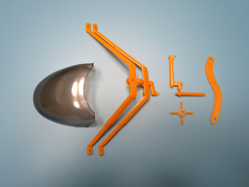 1960年代リリースの古いキットですが、下の可動脚部品とぜんまいメカで4足歩行します。