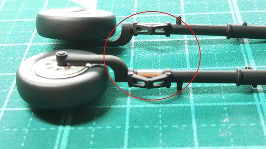 主脚カバー内側にプラパイプの輪切りを取り付けておきます↓