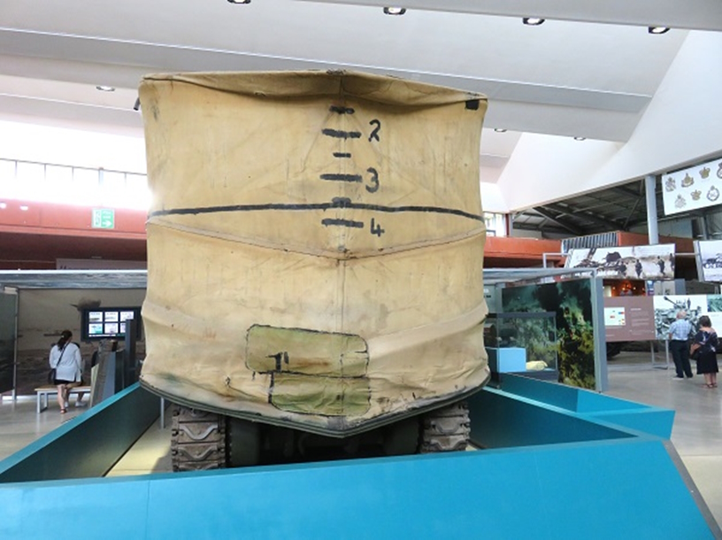 オマハ海岸での沈没の事故原因は、波に弱い車体側面を、波側に向ける進路を選択したため、側面のキャンバス地のスクリーンが波によって破壊されたためと資料にありました。