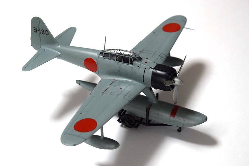 う~~ん、フロートを太くして、垂直尾翼を大きくしたので、だいぶ二式水戦っぽくなったと思う。中途半端な改修だけれども、まあ、プラモデルだからね。