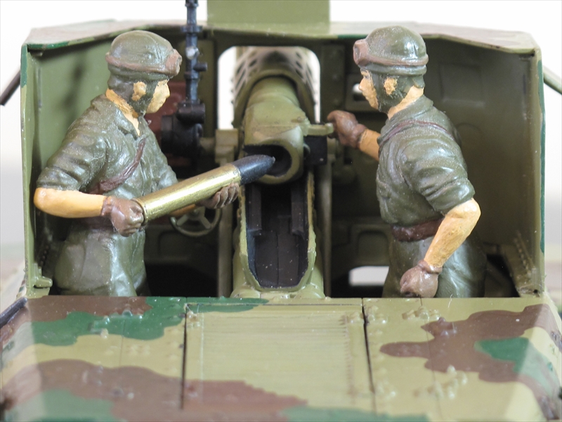 タミヤのキットは1977年に発売されたそうですが、砲手と装填手のフィギュアが付いていますので操作の様子をイメージすることができます。