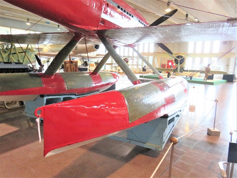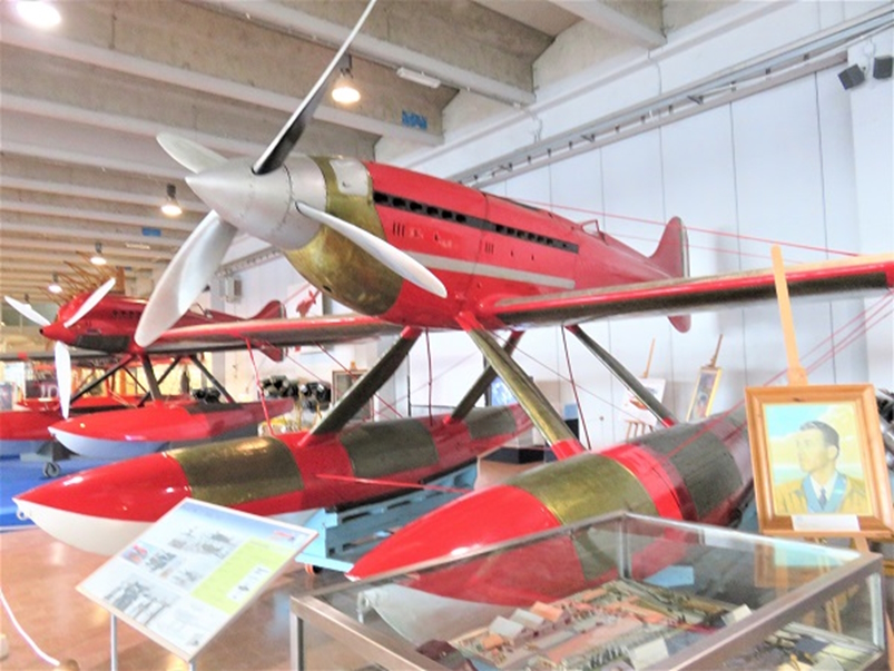 1934年10月23日、フランチェスコ・アジェロはマッキ M.C.72 水上機を操縦して、自身がM.C.72で前年に記録した水上機の世界速度記録682km/hを更新し、時速709.202km/hの不滅の記録を達成しました。(速度の小数点以下の数値を207や209とする資料があり ますが、本稿では博物館の標示に従いました)最後の飛行で世界記録を樹立したM.C.72は、故佐貫亦男教授の著作によると、記録を達成したガルダ湖南岸のディゼンツァノの町で保管されていましたが、その後トリノのイタリア空軍博物館に移り、次にミラノのレオナルド・ダ・ヴィンチ記念国立科学技術博物館で展示され、佐貫教授は1974年夏にミラノで見学されています。そして現在はヴィーニヤ・ディ・ヴァッレ(Vigna di Vally)空軍史博物館に翼を休めています。
