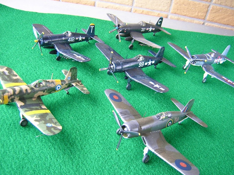 それでは我が家のコルセア軍団(ハセガワ、フジミ、レベル、ボビーボス等)と記念撮影しておきます。まだまだ在庫にイタレリ、タミヤとありますのでぼちぼちがんばります。それではまた。