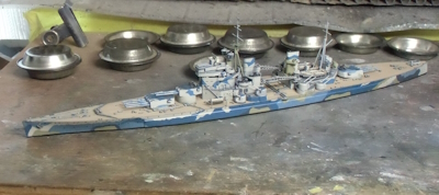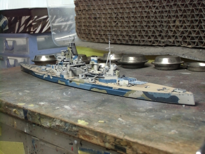 色合いが諸説紛々なうえ、ややこしい英艦船の迷彩を見事に体現したモデラー泣かせの船と言っても良いでしょう。初期の頃はほぼベタ塗り一辺倒なのでソッチの方を作るのもアリですが、大抵のヒトは最終状態であるマレー沖海戦バージョンの方なんじゃないですかね。展示会でも時折見かけますが、殆どこのうねうね迷彩ばかりで、ベタ塗りのプリンスオブウェールズはまだお目に掛かったことがありません。