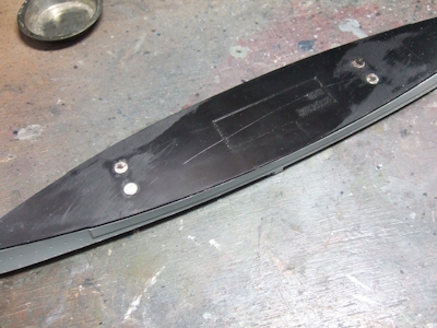 (写真2) またしても仕込んでしまいましたネオジム磁石。今回は台座を作らないので別に要らないんだけど、もしかしてひょっとして鉄製のドアとか、クルマ(もちろんホンモノだ)の屋根とかに貼り付けて飾ることがあるかも知れない。備えあれば憂いなし、転ばぬ先の杖ってヤツですよ。
