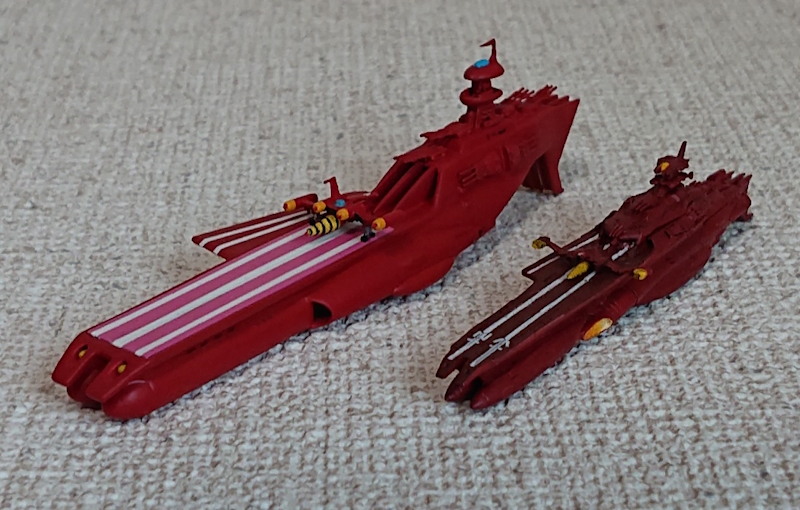 バンダイの宇宙戦艦ヤマト2199版メカコレクション(以下メカコレ)のドメル艦隊各艦を製作しました。いい機会なので旧版メカコレと並べてみようと思います。