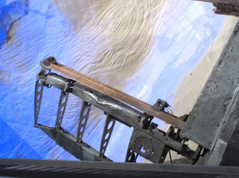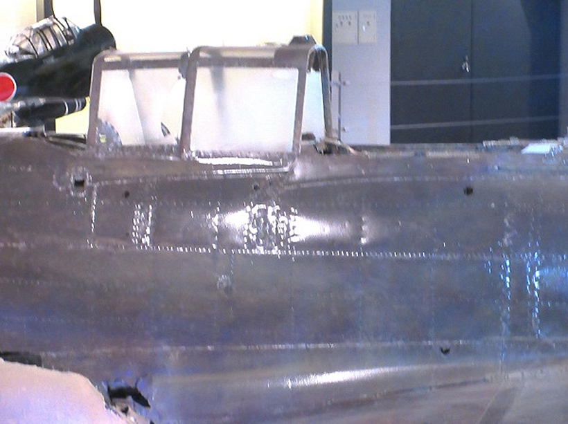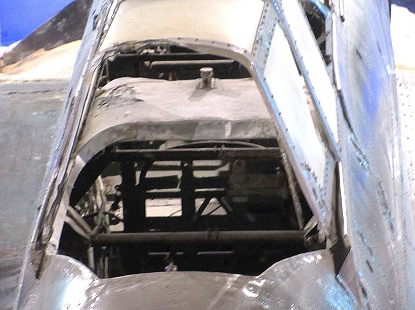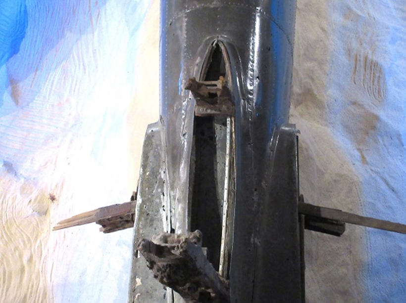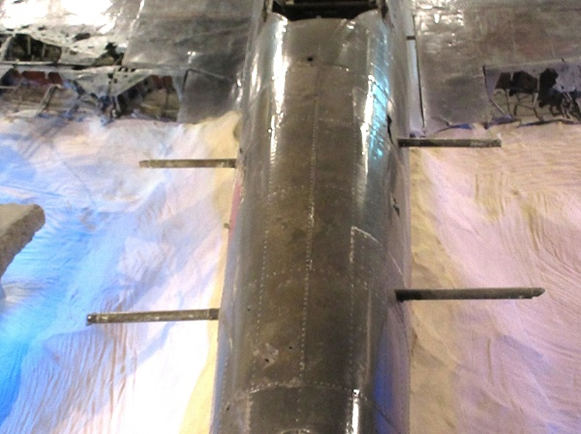 垂直尾翼基部(上)と水平尾翼の残存部(下)を上方から。
