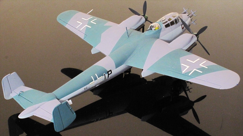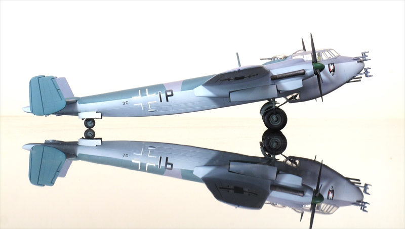 Do 217爆撃機から派生した夜間戦闘機です。機首は爆撃型の透明風防を廃して、20㎜機関砲×4、7.92㎜機関銃×4の重武装です。同時に外観上の大きな特徴である索敵レーダーのアンテナ(細部の素子は省略されている)が装備されています。大きさからして1943年ごろのFug 202 B/C のようです。