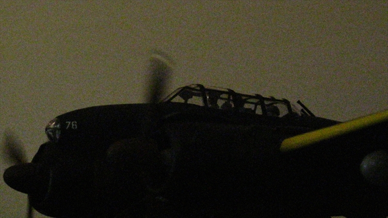 モーターを内蔵してプロペラを回しました。月明りを頼りにB-29の影を求める76号機。