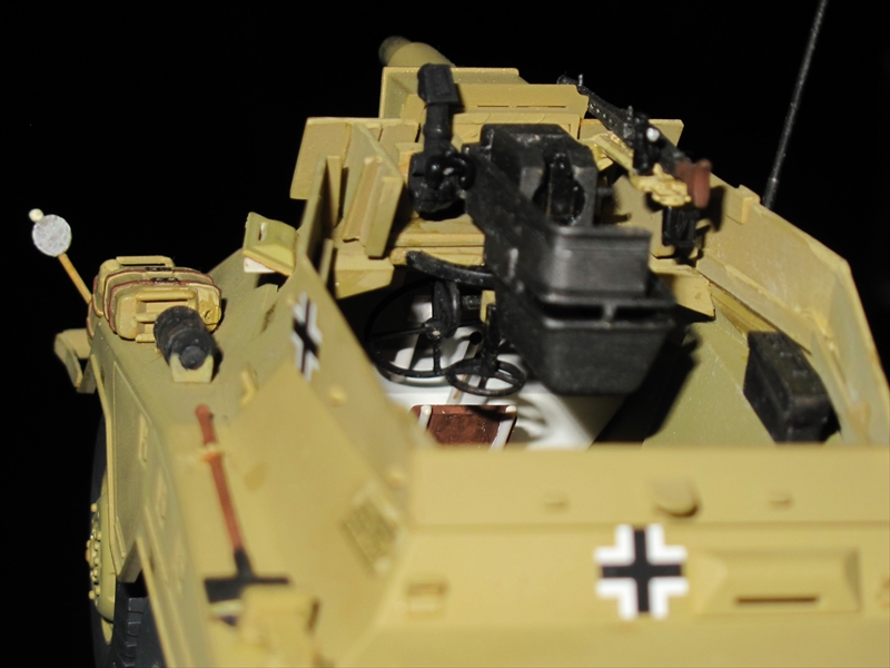 75㎜砲にはMG42機関銃が同軸に装備されています。対戦車戦闘が可能とはいえ戦闘室周りの装甲は15㎜程度なので被弾するとほとんど生き残れません。