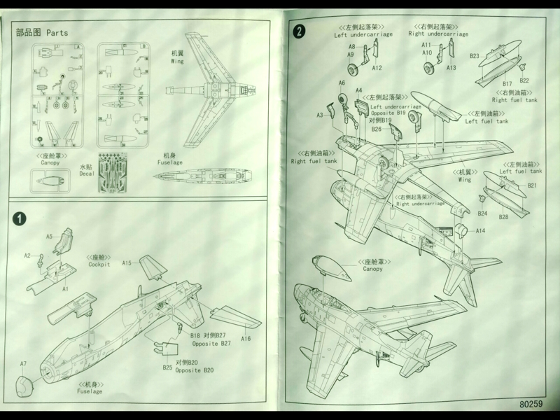 部品総数31でデカールは西ドイツ空軍と日本のブルーインパルスの2種類が用意されています。今回は西ドイツ空軍機にしてみました。