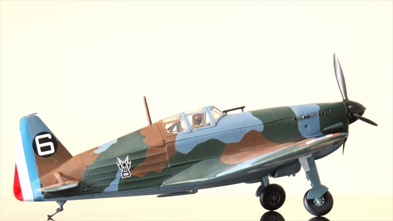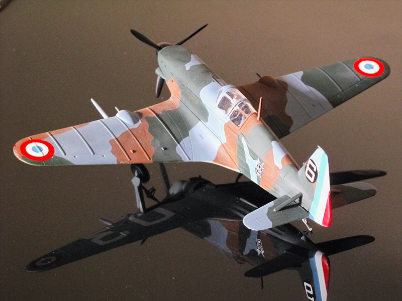 M.S.406は1935年8月に初飛行したM.S.405の改良型として機番を繰り上げて登場、1938年に大量生産が開始されました。当時の先端技術の趨勢としてMS社としても初の 低翼単葉、引き込み脚、密閉風防、可変ピッチプロペラ、着陸フラップなどを採用(胴体後部は鋼管溶接に羽布張り)。第二次大戦の開戦時には約600機がフランス軍に就役していたようです。ということは 開発時期から戦力化までドイツのMe109とほぼ同様の経緯をたどったと思われるのですが 1940年5月~6月のフランス戦役ではMe109にコテンパンにやられています(MS406の誇り高い敢闘の記録もありますが)。