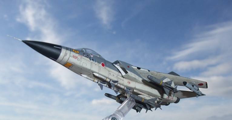 という設定で製作した1/144 トーネードADV母機の空自F-2です。ドラゴン製トーネードADVに、カフェレオ製F-2のキャノピーを接着して単座型としましたが、トーネードADVの複座型キャノピーにつながるドーサルスパインへの接続をスムーズにするために、キャノピー位置が高くなり、デブな印象を与える機影になってしまいました。ドラゴン製トーネードにはパイロットがいませんので、Mach 3製の3DプリンターのF-2パイロット及び座席を使用しています。胴体後部のExhaustノズルをスラストリバーサーごと切取り、同じくMach 3製のJ-79 ENGのExhaustノズルを取付けました。RB199より少し直径が大きいですが、推力向上型ENGの雰囲気優先です。