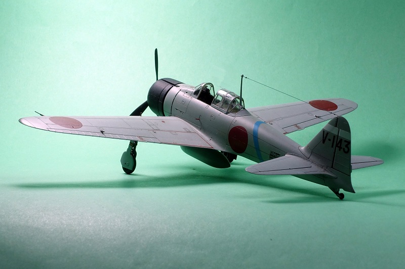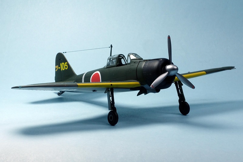 ミッドウェーでの惨敗を経て、ガダルカナルまで遠征しなければならなくなった「ラバウル航空隊」所属の二一型ですが、この時期はまだマーキングにも一応の整いが感じられます。使用したキットはタミヤの<永遠の0>仕様の製品ですが、一般の二一型の模型としても、あくまで正確な造型、凹凸を駆使したモールド、抜群の部品整合、そして極めて精度の高い小部品、という文句なしの絶品で、いわゆる「どなたにおすすめしても、ゆめゆめお叱りを受けることはありますまい」のキットです。