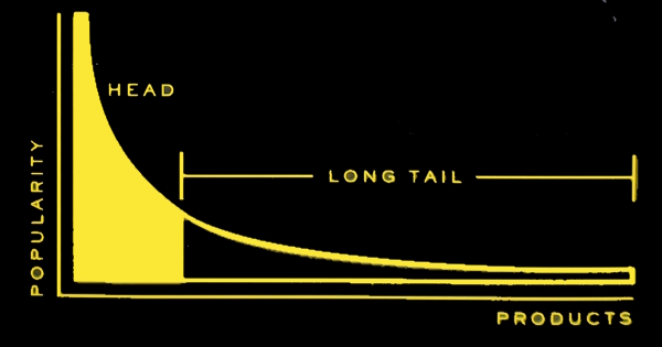 このような恐竜の頭と長いしっぽのような形状のビジネス形態を指す「ロングテール(長いしっぽ)」は 現在では主要なマーケティング用語となっています。
