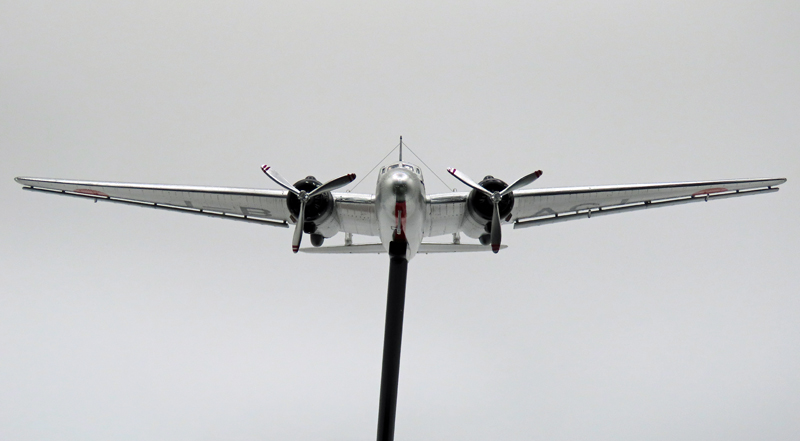 飛行姿勢にしたことと、プロペラ電動、翼端灯と機首着陸灯の電飾以外は素組みです。