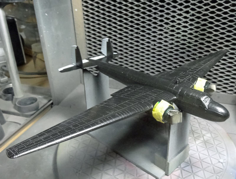 銀塗装の下地としてグロスブラック(Mr.カラー2番)を全体に塗装