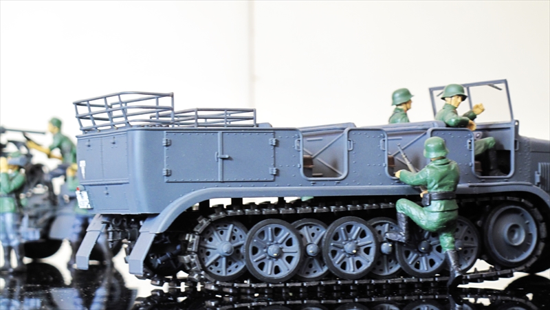 Sd.Kfz.7は1934~1937年に開発されたドイツ軍の自重11.5 tonの半軌牽引車。牽引重量は8 tonと設定されているので自重7.4tonのFlak36は最適のコンビです。