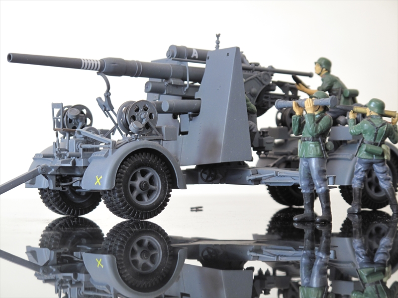 Flak36は緊急時など台車に乗った状態でも射撃できたそうです。しかしこの高さでは砲弾の装填はタイヘン。