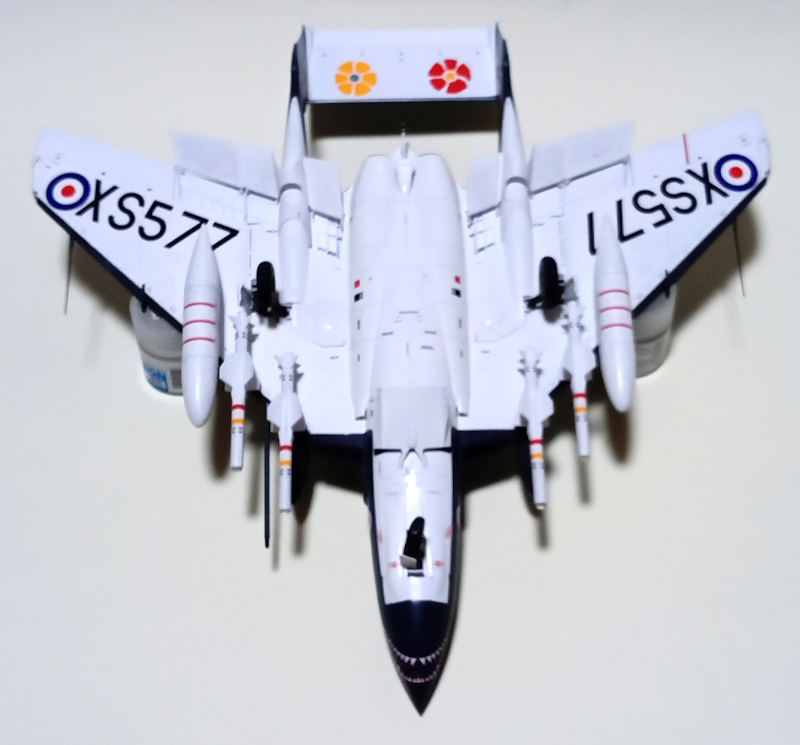 作例はレッドトップ4発と増槽2つを備えたフル装備での仕上げです。確かロケットポッドも入っていたかな・・・主翼を畳んだ状態にも制作できます。
