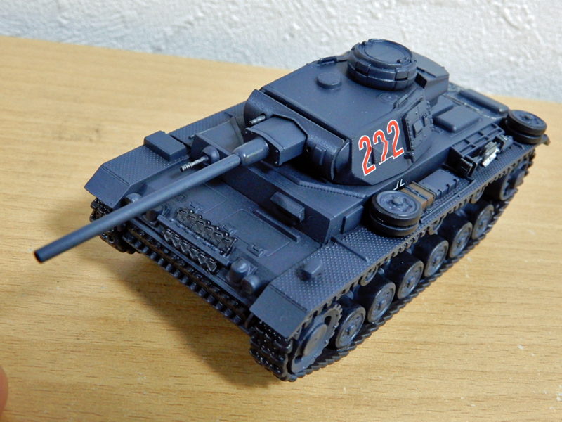 Ⅲ号戦車の車番のうち、真ん中の数字は,ちょっと不細工。砲塔の膨らみのところでデカールを二分割して真ん中に隙間を空けてから余ったデカールで隙間を埋めてやれば良いのではないかと後で気付きました・・・汗・・・。