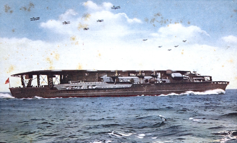 次は色。当時の彩色絵葉書が軍艦をどう着色していたか(プラモデルの塗装だって着色だからね)はひとつの参考になるだろう思って、赤城を含めて3枚紹介してみた。甲板は黄色というよりも黄土色、軍艦色の灰色は明るめに着色しているが、絵はがきの見栄え尊重で調色している可能性もある。そんなところだから、ほんの参考程度にみてほしい。