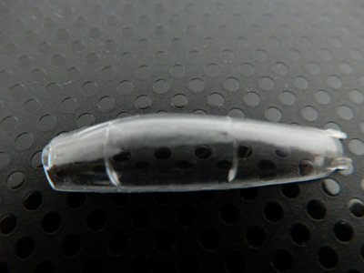側面が膨れたキャノピーの断面を再現するため,スライド金型が使われており,中心線に沿ってパーティングラインが入っています。カッターでパーティングラインを削りとった後、番手の大きい耐水ペーパーをかけ,コンパウンドで磨きました。