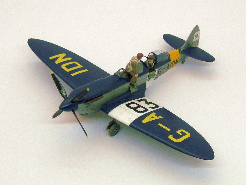 「G-AIDN」は塗装が色々変遷していますが、今回1949年のNational Air Raceに出場した時の姿で仕上げました。機体上面が濃紺、側面下面が銀、胴体にオレンジの帯、加えて機体各所に白地に黒でレースエントリーナンバーを記載しています。