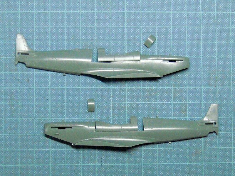 胴体パーツの操縦席前後部分を切り出して操縦席を4mm前進させて再接着。切り出した側面パネルの後端に後操縦席が入ります。