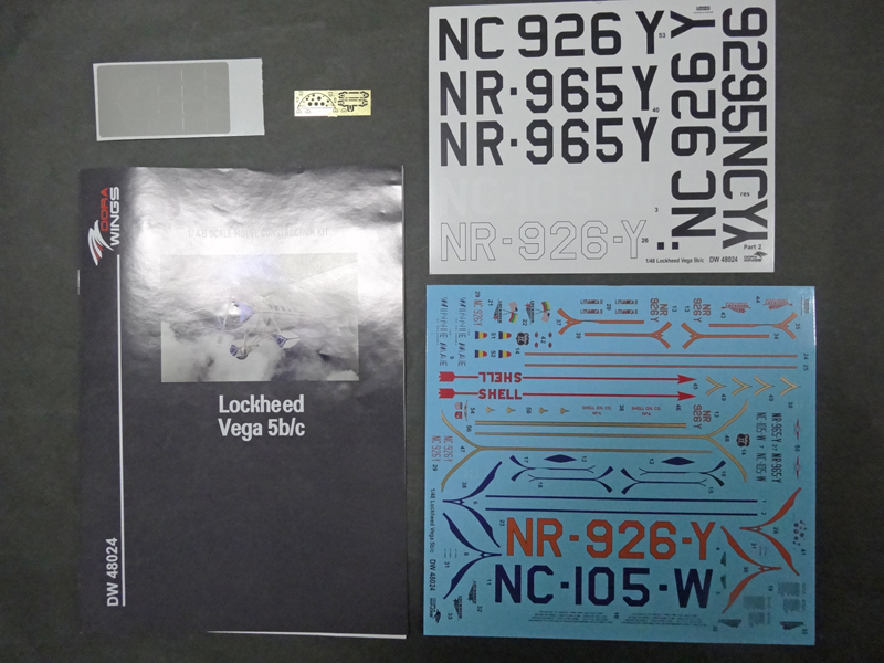 箱絵はウィニーメイ号の絵になっていますし、デカールもウィニーメイの物が付いているのですが、客席の窓は左右5個づつ空いていますし、主翼前縁の着陸灯もしっかり付いています。