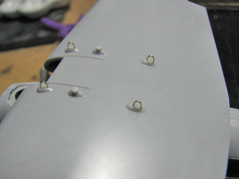 ・主翼正面のクレーン用フックはエッチングパーツになっていますが、平べったくて変なので、真鍮線にしました。