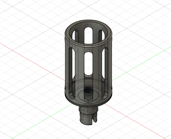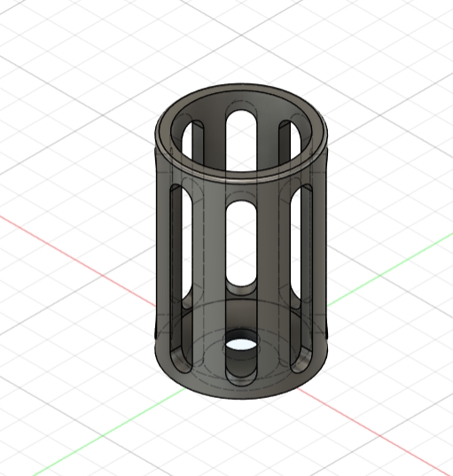 実物は金属製円筒形状ですから、旋盤レース加工の線条模様が円周方向についているはずです。円筒開口部を上にして別々に3Dプリントすれば 積層痕も自然に見えるはず。上下を瞬間接着剤で接着し、艶消し黒で塗装して完成です。