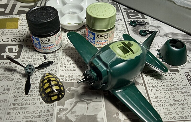 コックピット色とセミグロスブラックで塗装。取説に細かい色指定はありますが、塗る場所と色は大体の雰囲気で。