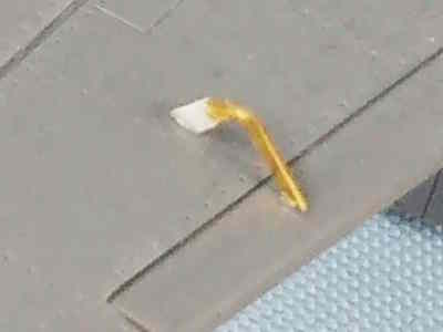 主脚柱には実機画像を参考にブレーキホースを付けておきます⇩
