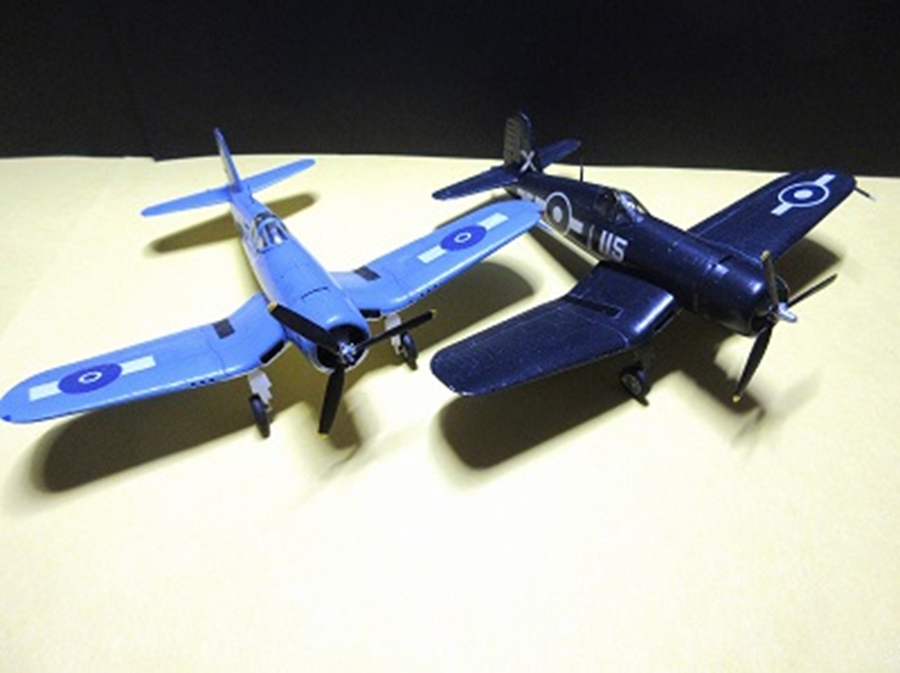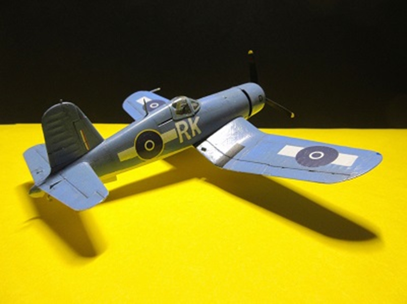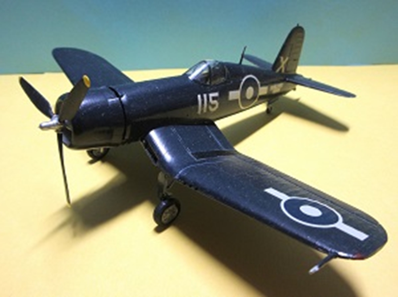 このキットは下に載せた英艦隊航空博物館に展示されている、戦時のまんまのコルセアに影響され、汚し塗装に挑んだのですが、72だと汚くなり過ぎると思い、軟弱にも途中で方針を転換しました。