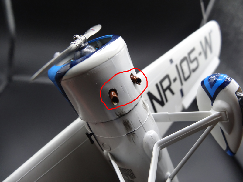 ・主翼上面のクレーン用フックと胴体左側のコックピットへ昇降ステップが省略されているので真鍮線で追加。