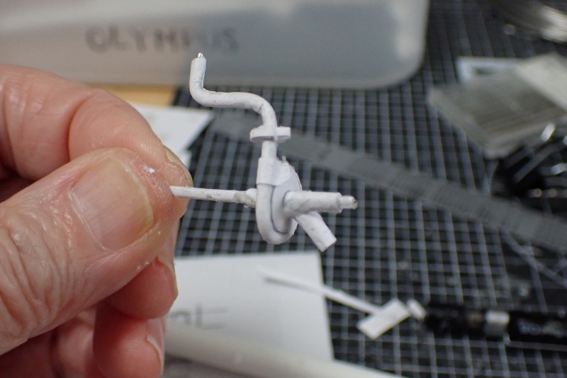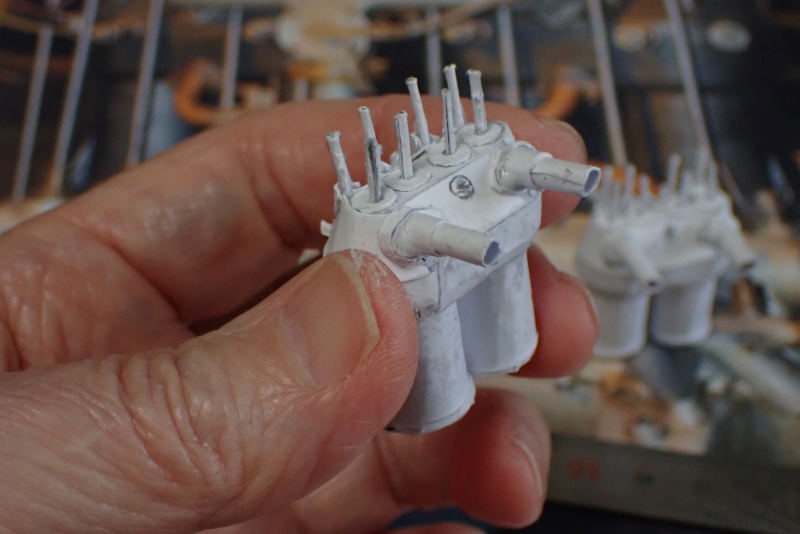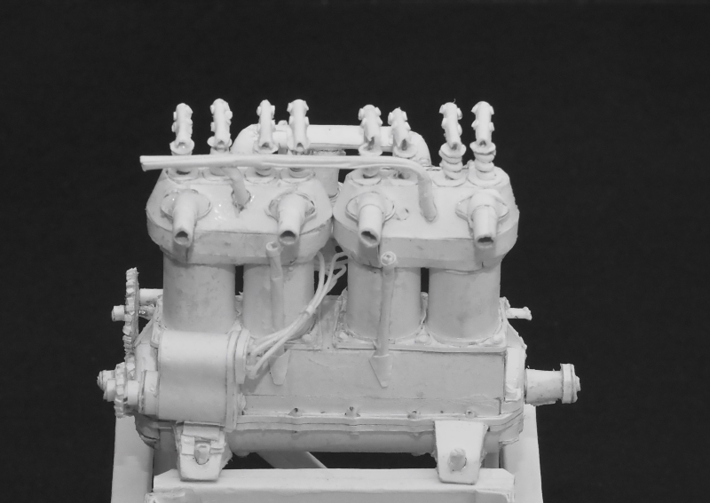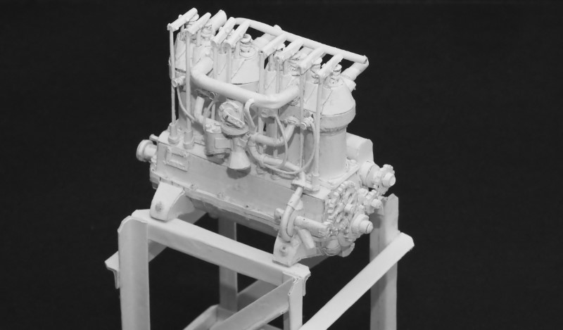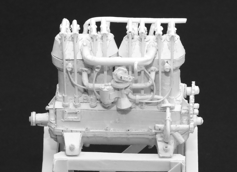 実機の画像を参考にシリンダブロックの細部を作っていきます。