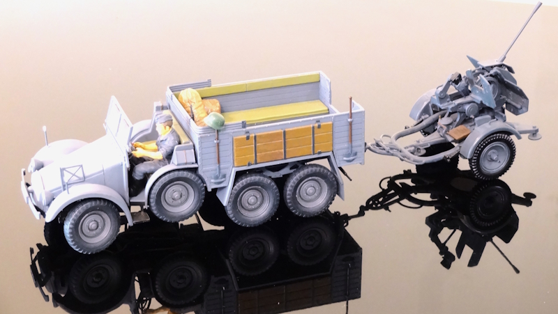 戦争の初期では対戦車砲を牽引して進撃していたのが、対空機関砲を牽引すると雰囲気も守勢のようになるので不思議なもんです