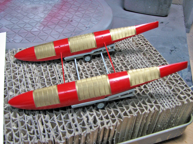 先ずは台車を先に組み立て、これを治具にして左右のフロートをジョイントしました。