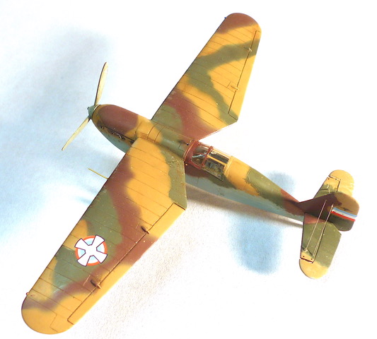 キットはアズールスタンダードな簡易インジェクションです。事前に擦り合わせをすれば難しいものではありません。塗装はパターンごとに型紙を貼って吹いてから主翼上面にはC310ブラウンを細吹きで境目をぼかしてます。胴体は筆でドライブラシの要領で境目をぼかしてあります。