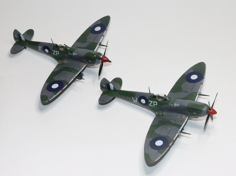 | シャークマウス小の2機を並べてみました。左がハセガワのZP◎F、右がエデュアルドのZP◎W。このころはスピンナーがレッドです。 |