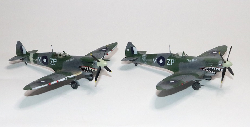 なお、最初に取り上げた1/48のZP◎Q(A58-477)はシャークマウスが描かれなかったのではないかと思われます。というのはGoogle検索のAIモードによると、この機体は1944年12月14日に第452スコードロンに配属され、コードレターがQY-Xになったとされていますので。このコードレターZP◎Qを引き継いだA58-614には、シャークマウスを描いている写真が残っています。