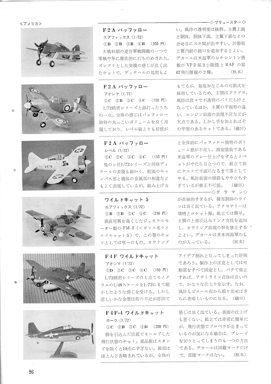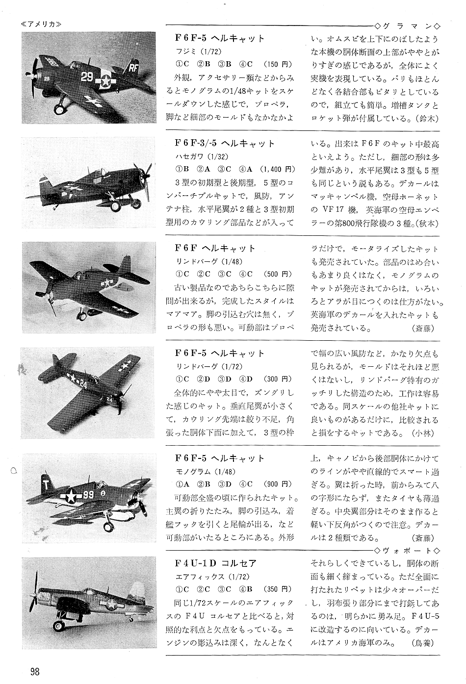 | (第9回)1966年号その3 (48p~73p) 第2次大戦アメリカ戦闘機 海軍機 「グラマン F-4F ワイルドキャット」、「グラマン F-6Fヘルキャット」、「チャンスボート F-4Uコルセア」 |