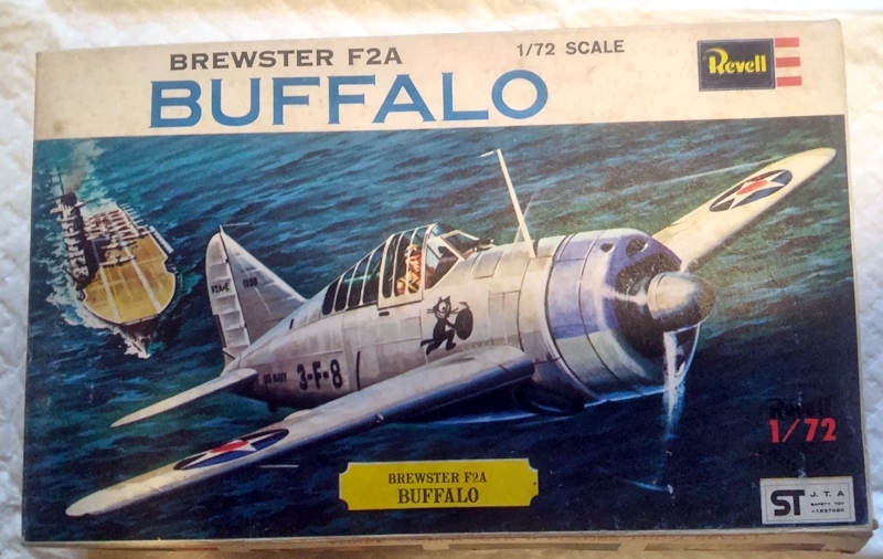 どうもヒサマロです。今回の温故知新シリーズはレベルファイターシリーズからF2Aバッファローを取り上げさせていただきます。バッファローはあまり活躍したとは言えませんがプラモデルの世界では1960年代にアオシマやエアフィックスなどから1/72で英軍用で出されていました。レベルは本家アメリカ海軍仕様で1965年に発売しました。相変わらず箱絵が素晴らしいですね。表面のテクスチャーは全体に細かな凸リベットが全面に打たれておりますが、うるさい感じもなく今のキットにはない60年代テイストが魅力です。