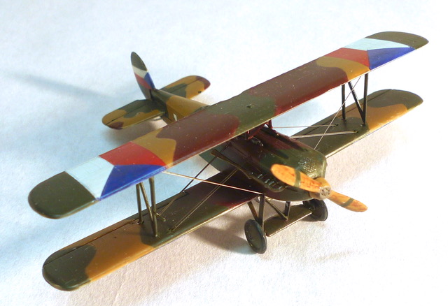 向かって左側二重張り線の一本が外れてしまい修復しようとしたらヨレてしまいみっともなくなりました。落ち着いたら修復します。同じく左側下翼の下面マスキングテープ取り忘れです。ご愛嬌ということで・・・