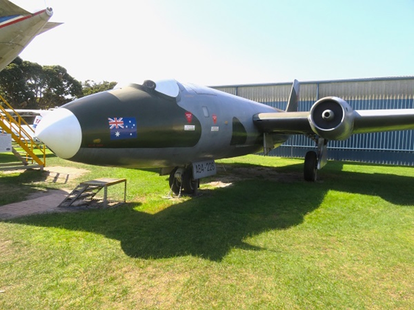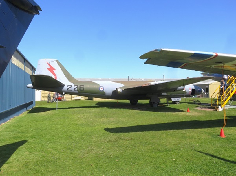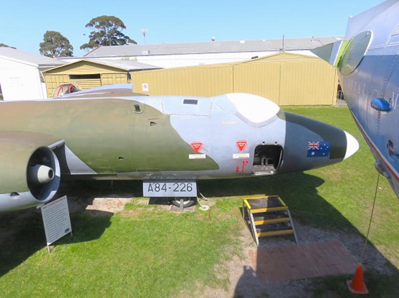 2019年12月撮影。A84-230機もGAF生産の機体です。キャンベラ搭載のエイボン101エンジンが機外に展示されていました。