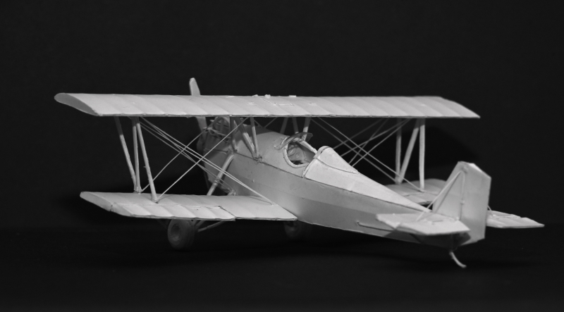 1932年発表のアメリカの小型ホームビルド機(全長4974mm)を厚手のコピー用紙を主な材料に作りました。