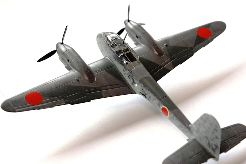 一応、これに加えてプラモデルとしての改善をしてある。翼の後縁を削り上げて薄く見せ、機首に機銃の穴をあけ、後方が横に張り出した透明パーツはそれなりに磨きなおしておいた。