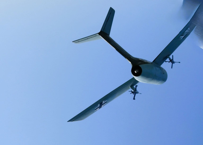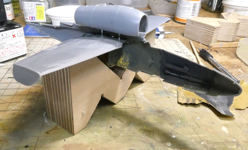 フッケバインは、試作機の製作中に終戦、同時期の試作機のメッサーのP.1101は、組立中で接収された実機写真が残されるも こちらは無し。ソ連崩壊後も出てきませんでしたね。