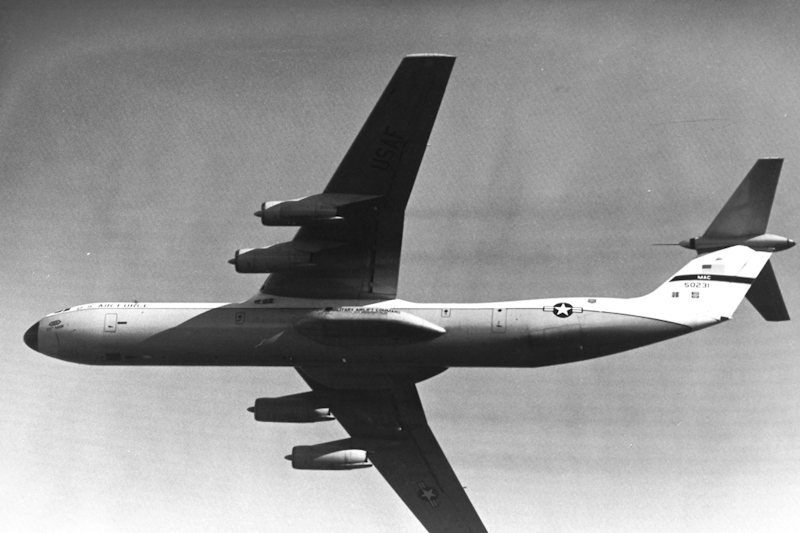 やがて、その胴体延長をしたB型が我が家の上空を飛ぶようになった。でも、胴体延長は旅客機にはよくあることで、「これは長い!」とまでは感じなかったように記憶している。C-141スターリフターの延長タイプか…DC-8スーパー61なんかに比べたら妥当な範囲だな、程度だった。あらためて掲載の写真でみると随分と長いのだが、その時代にはどうってことなかった。